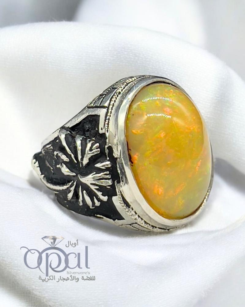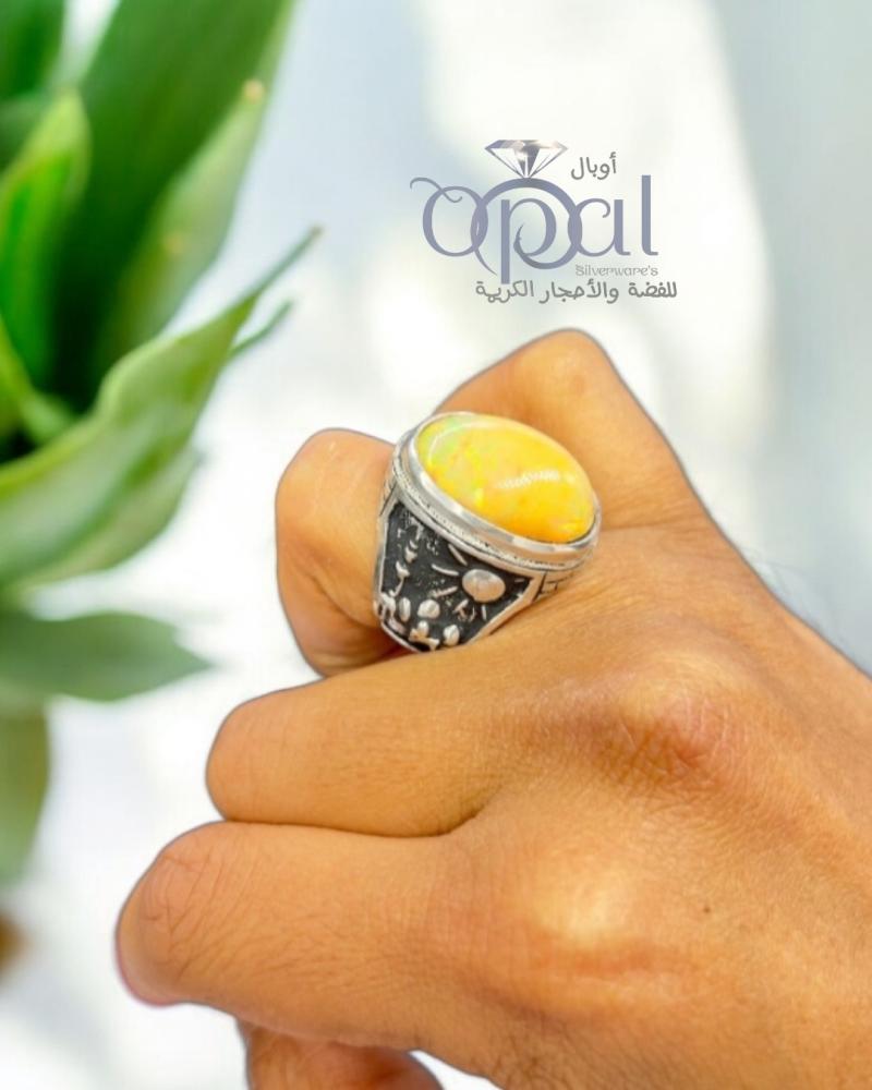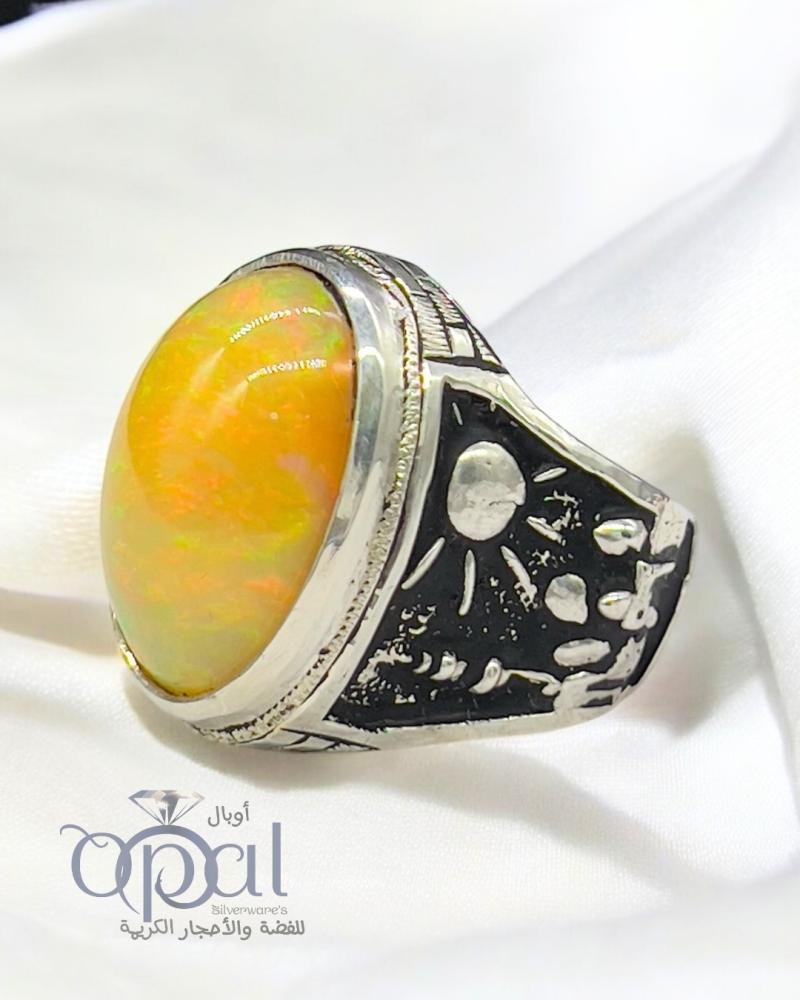 خاتم اوبال اثيوبي اصفر شمسي فاير عالي بصياغة مسجد قباء نقش اوبال