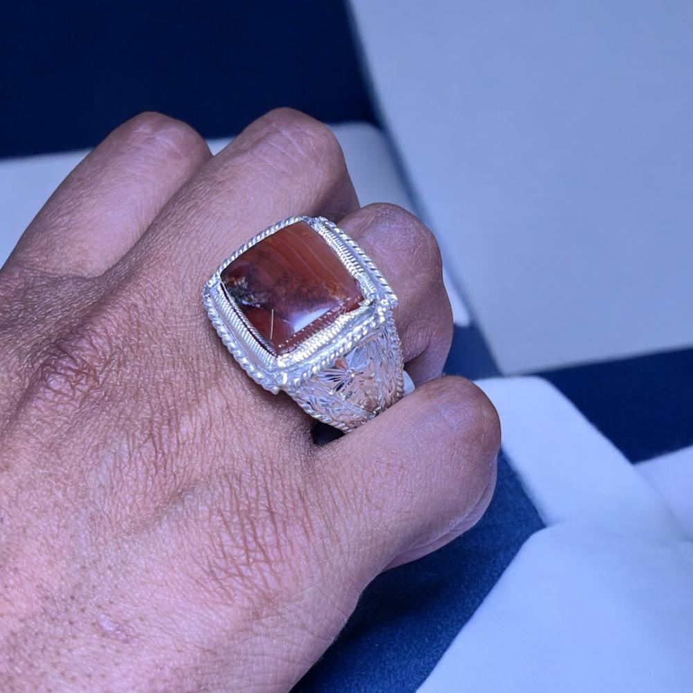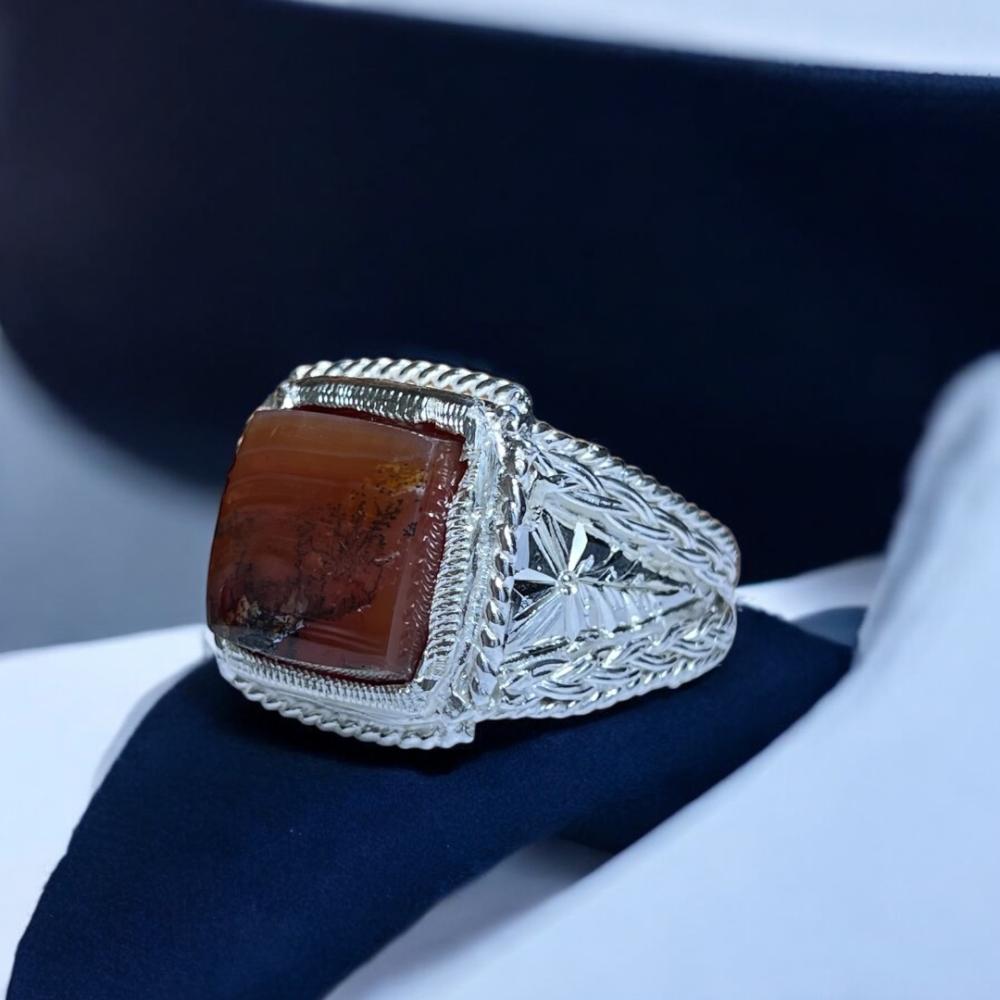خاتم عقيق شجري بصياغة اوبال