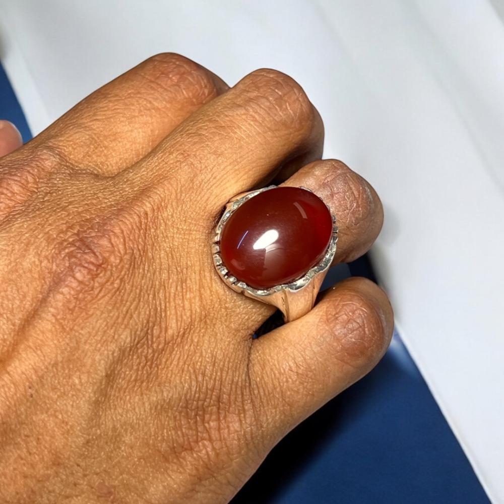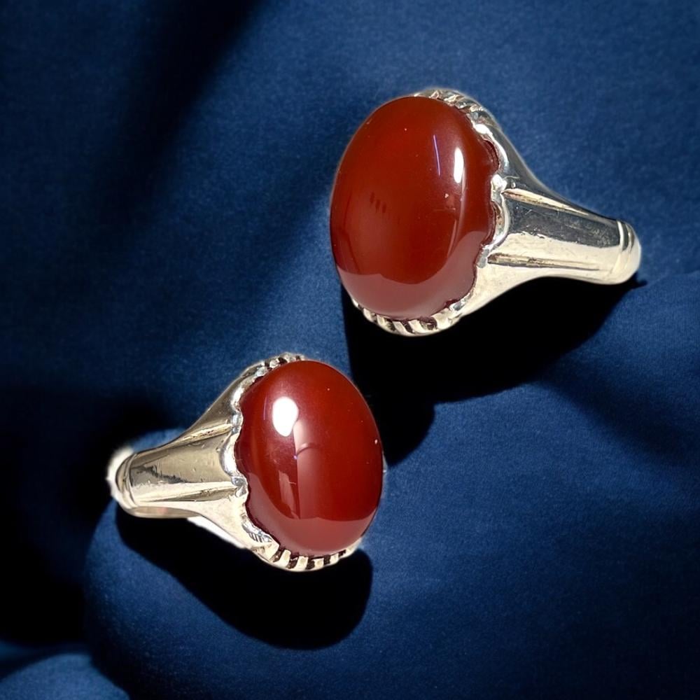 خاتم عقيق كبدي رجالي، بتصميم إسطنبولي بسيط وأنيق. يتميز بفص من حجر العقيق الكبدي الطبيعي ذو اللون الغني والعميق. الصياغة من الفضة الإسترليني عيار 925، بتصميم أوبال ناعم يبرز جمال الحجر دون زخرفة مبالغ فيها، مما يمنحه مظهراً كلاسيكياً وجذاباً.