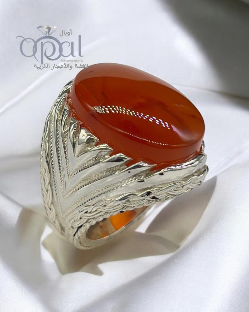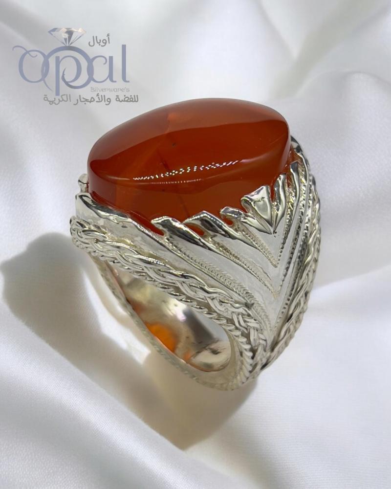 خاتم عقيق مشمشي كبير بصياغه اوبال اليدويه