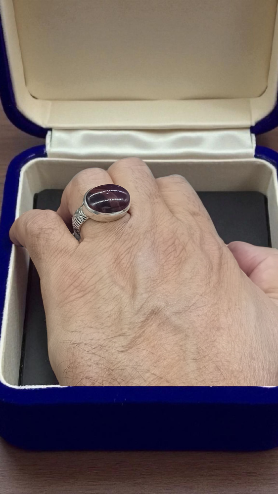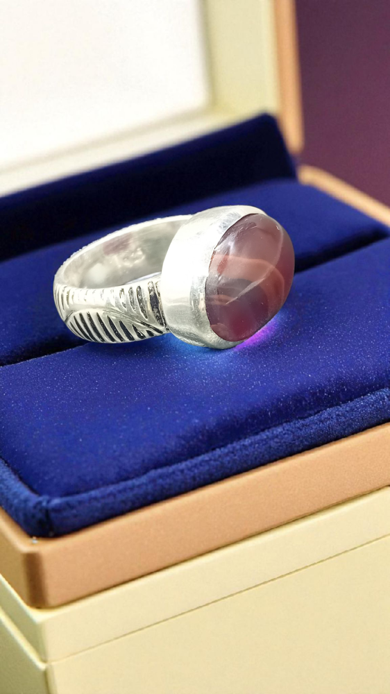 خاتم ملكي بصياغه يدويه وحفر متقن من ورشة اوبال بحجر العقيق اليمني