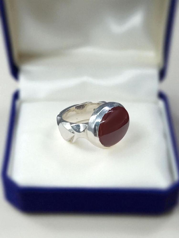 خاتم ملكي مميز بحجر العقيق اليمني وصياغة اوبال اليدويه الراقيه بفضه عيار ٩٢٥