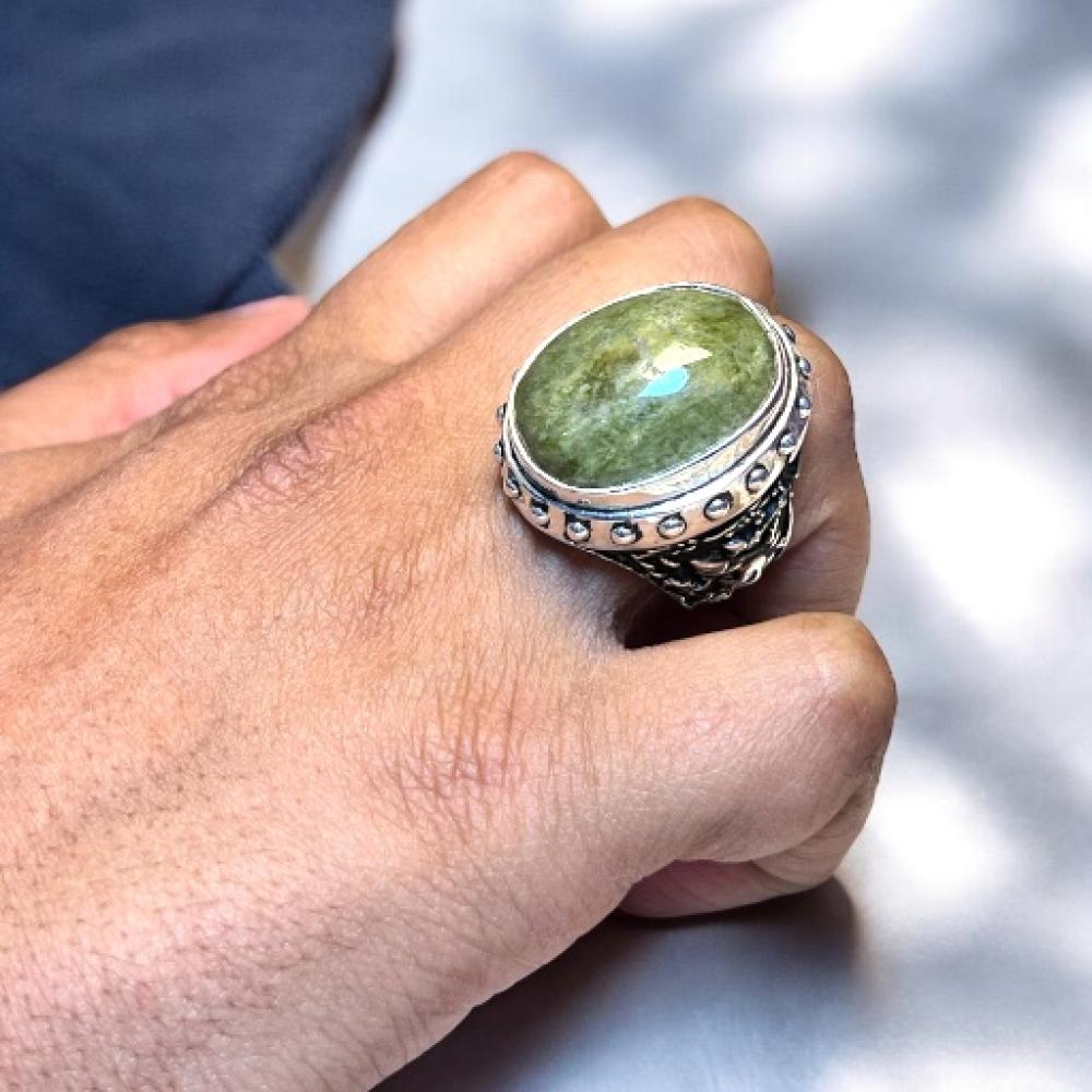 خاتم زبرجد مكه مستخرج من جبال مكه المكرمه حجم كبير بصياغة نقش اوبال الحصريه