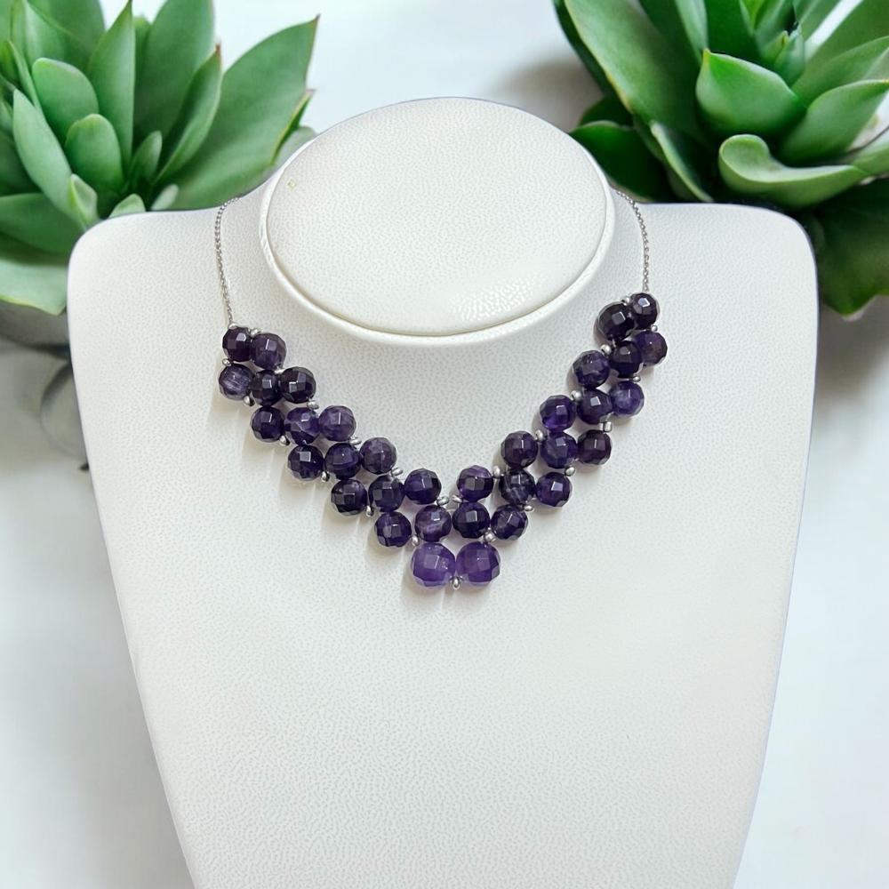 سلسال فضة فاخر يحتضن حجر الجمشت الطبيعي، بلونه البنفسجي العميق ولمعته اللي تبين من أول نظرة.